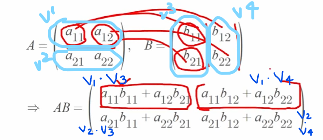(= 앞 행렬의 행벡터와 뒷 행렬의 열벡터와의 내적)
