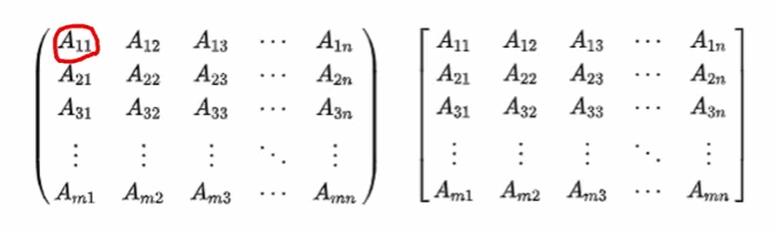 - 각 Amn을 A의 m번째 행 n번째 열의 성분(entry) 또는 원소(element) 또는 계수(coefficient) 라고 함