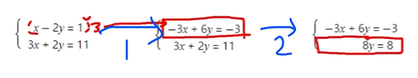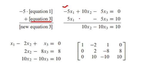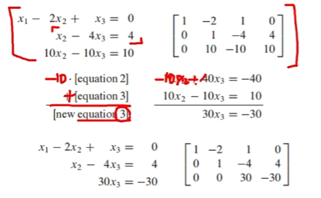 1번에선 3을 곱하였고(scaling), 2번에선 두 행을 더함으로써(replacement),