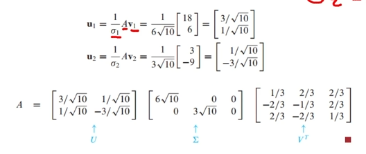 U는 A와 V의 곱에 특이값의 역수를 곱한 값입니다.