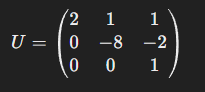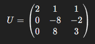 최종적으로 행렬 U는 다음과 같은 상삼각행렬이 됩니다.