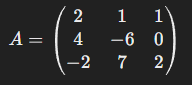R2 = R2 - 2R1 = (4 -6 0) -2x(2 1 1) = (0 -8 -2)