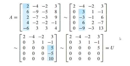 행렬 A를 U(=상삼각행렬)로 변환합니다. 목표는 A의 대각선 아래의 요소들을 0으로 만드는 것입니다.