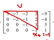U는 삼상각행렬이므로, 여기서도 x1,x2,x3,x4를 쉽게 구할 수 있음