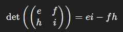 det(A) = a(ei-fj) -b(di-fg) +c(dh-eg)