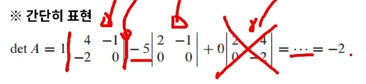 여인수 전개(cofactor expansion)을 통해서 determinant를 다양한 형태로 표현할 수 있습니다.