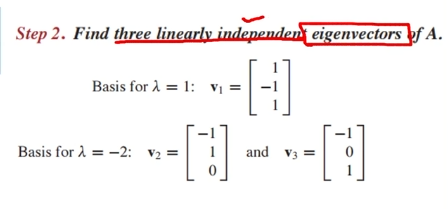각 고유값에 대해 고유 벡터들을 구합니다.