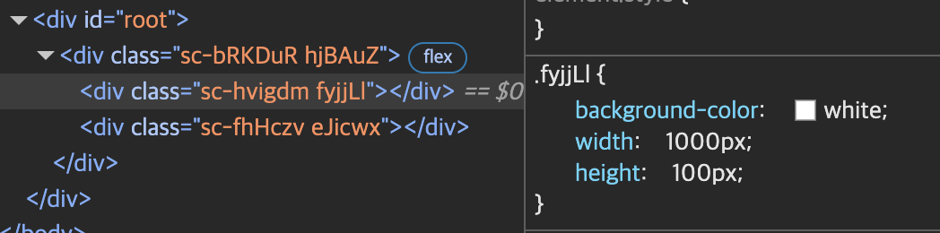 이렇게 생성한 컴포넌트는 자동으로 class명을 만들어주고, 그 클래스 안에 스타일 코드를 담아준다.