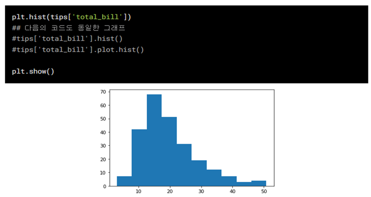 - 방법 : 연속형 분포를 나타내고 싶을 때, 데이터가 몰려있는 구간을 파악하기 쉬움 (ex. 고객들의 연령 분포를 파악 할 때)
