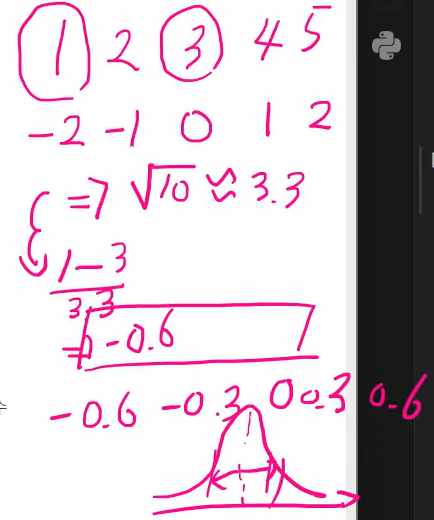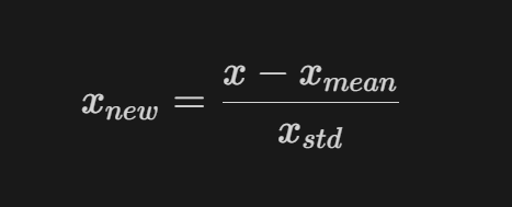 - 정의 : 각 데이터에 평균을 빼고 표준편차를 나누어 평균을 0, 표준편차를 1로 조정하는 방법 (=Z-Score를 통한 표준화)