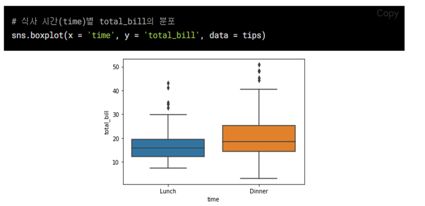③ boxplot : 수치형 & 범주형 자료의 시각화
