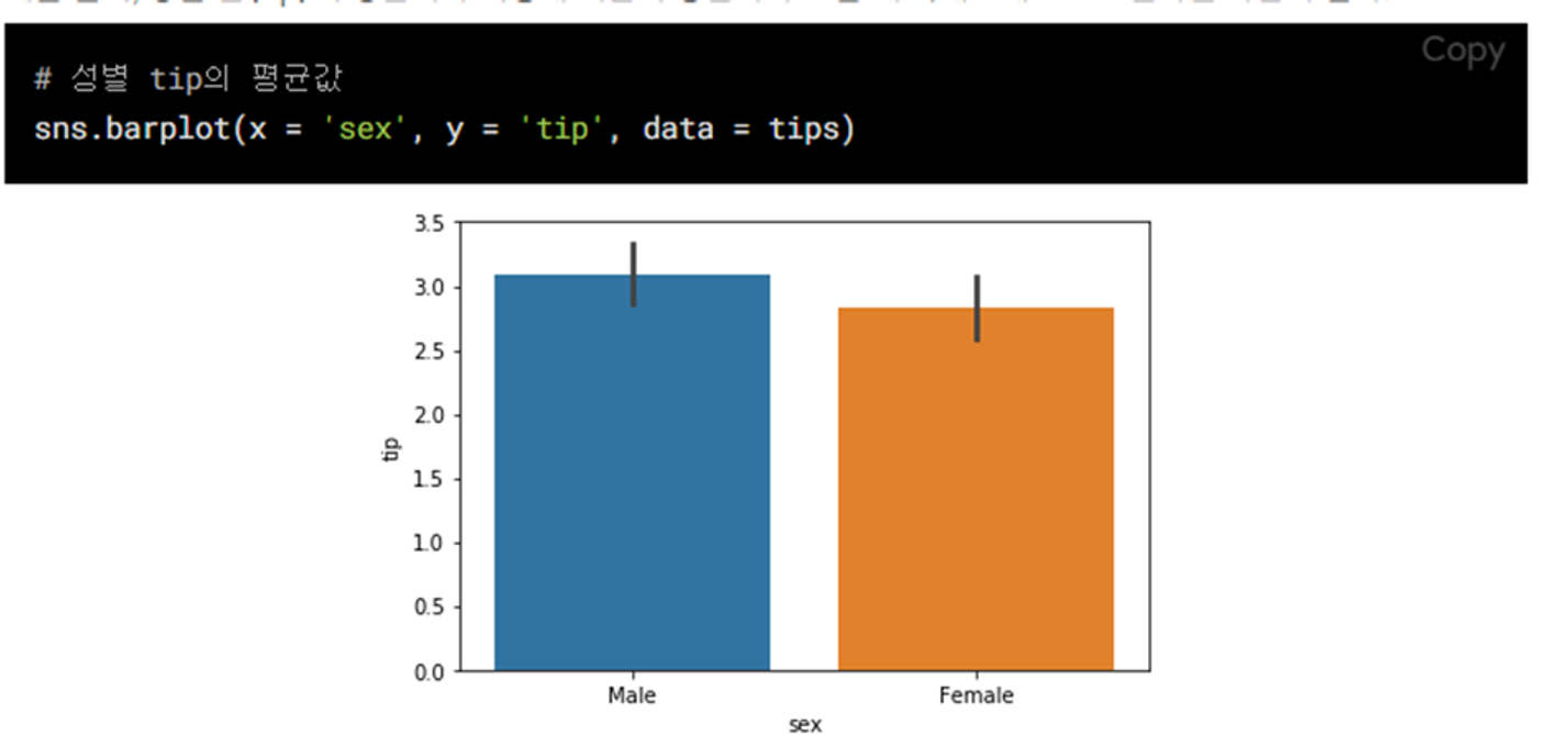 - 방법 : 범주형 데이터의 각 카테고리에 따른 수치 데이터의 평균을 비교 (ex. 다양한 연령대별 평균소득을 비교할 때)