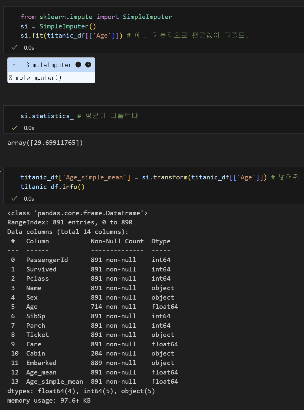 - SimpleImputer.statistics_ : 대치한 값 확인 가능