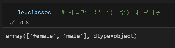 categories_: 인코더가 학습한 클래스(범주)get_feature_names_out(): 학습한 클래스 이름(리스트)