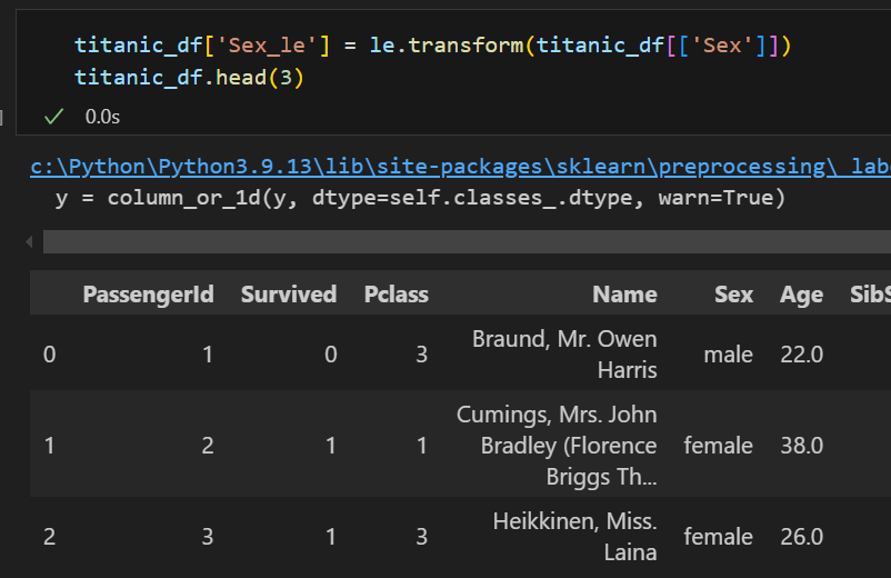 # CSR 데이터 데이터프레임으로 만들기 csr_df = pd.DataFrame(csr_data.toarray(), columns = oe.get_feature_names_out()) # 기존 데이터프레임에 붙이기(옆으로) pd.DataFrame([titaninc_df,csr_df], axis = 1)