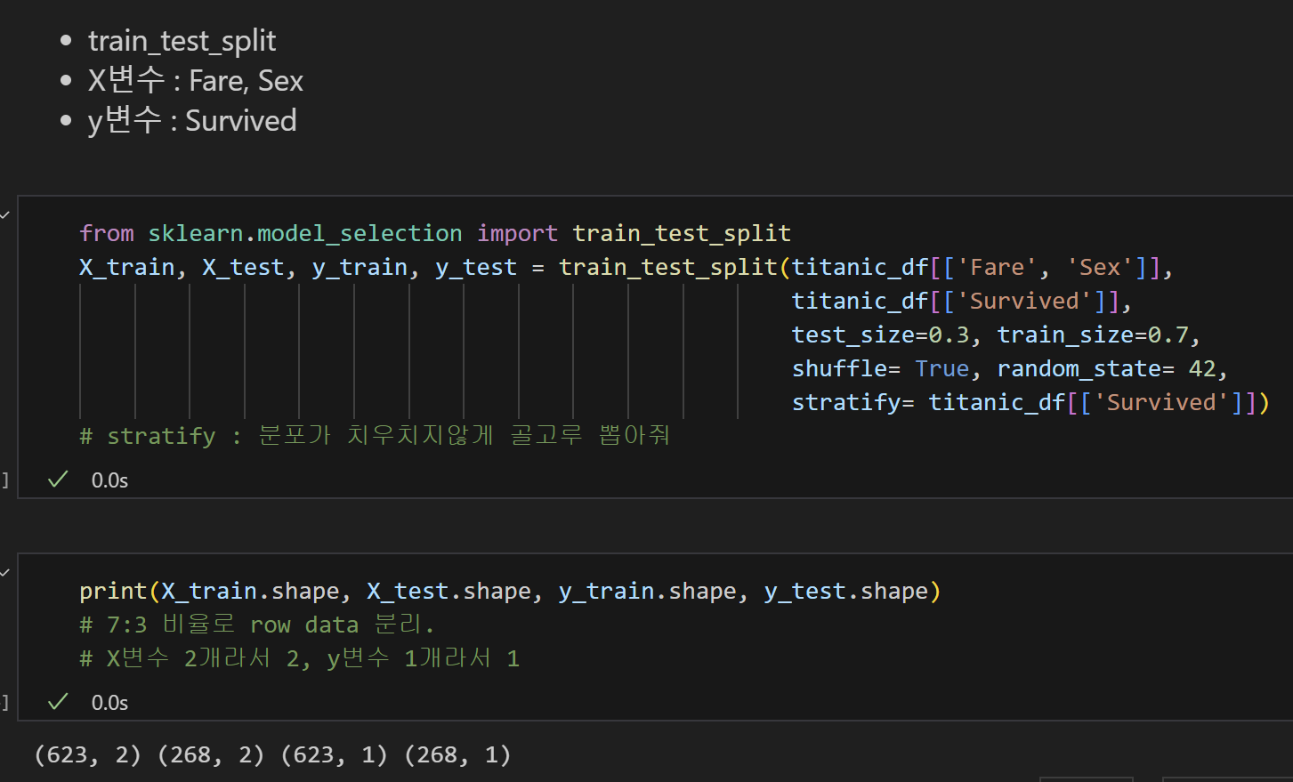 stratify= 분포가 불균형한 컬럼을 설정해줘야 비율을 지켜서 데이터를 분리할 수 있다.