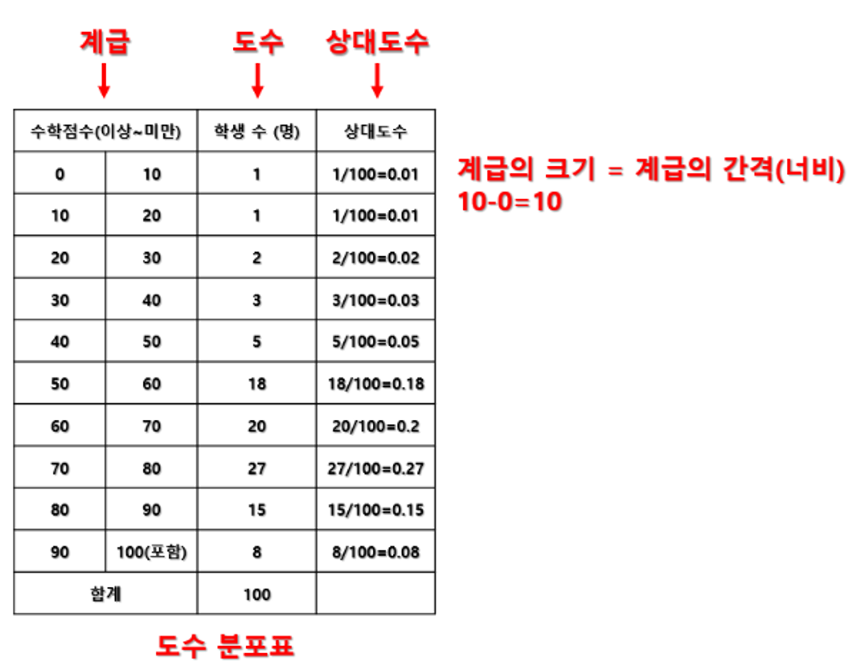 - 분산: 466 - 분산의 제곱근 = 표준편차 = 약 21.6 이 되겠습니다.= 즉, 반 전체의 영어점수가 약 20만큼 퍼져있다.(분산되어 있다.)라고 해석할 수 있다.