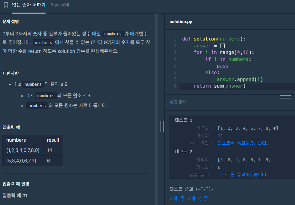 1. 그냥 간단하게 리스트를 만들어서 없는 숫자를 넣은 다음 더해라 하면 된다.
