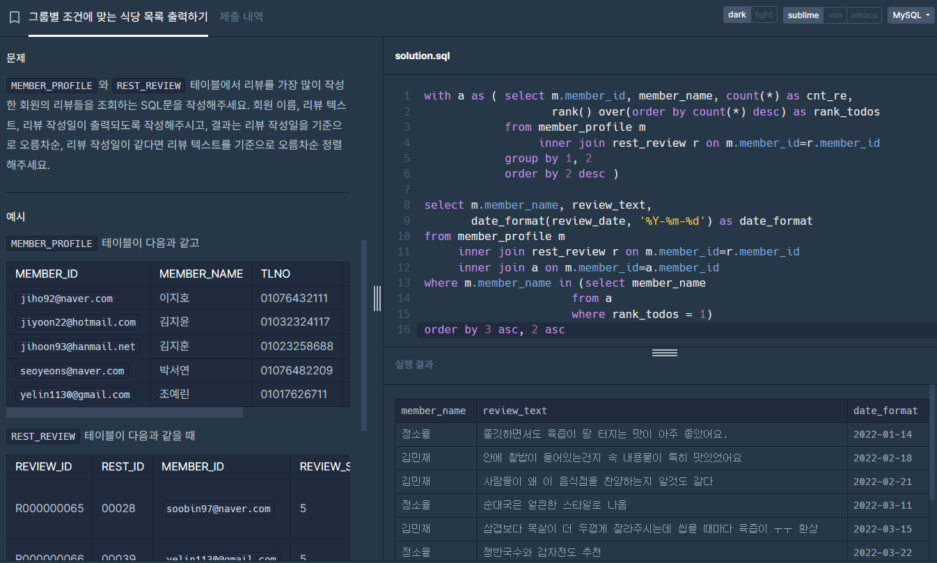 1. with로 멤버별 후기의 수를 순위를 매긴다.