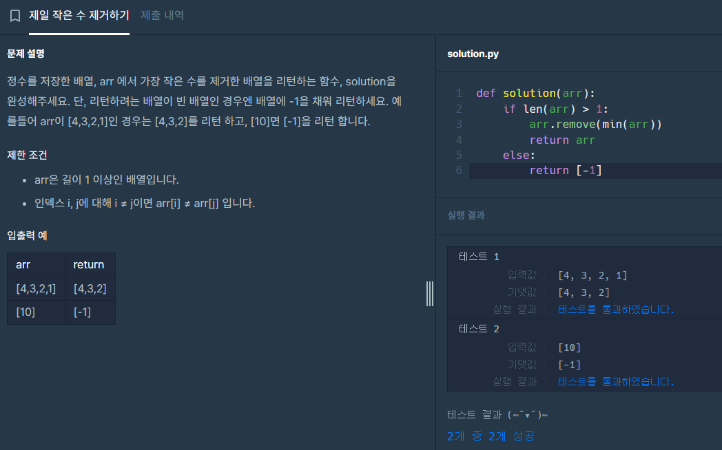1. 리스트에 숫자가 1개 초과인 리스트 들만 최소값을 제거하고, 1개인 리스트는 -1을 담도록 한다.