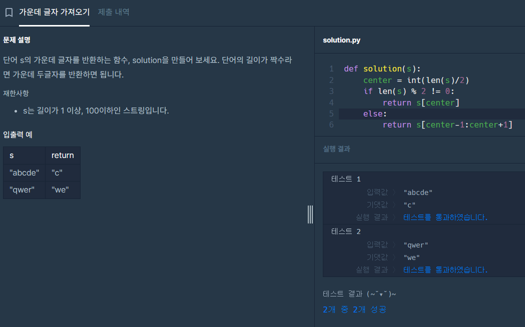 1. 길이를 2로 나눴을 때 나머지가 0이 아닌것은 중간 값을 추출하고,