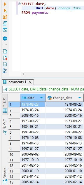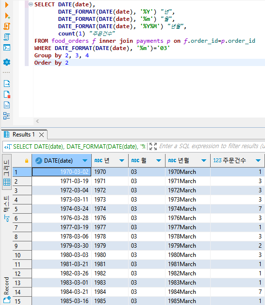 ✅ 글자로 취급되었던 date컬럼이 날짜로 취급되도록 변경되었다.
