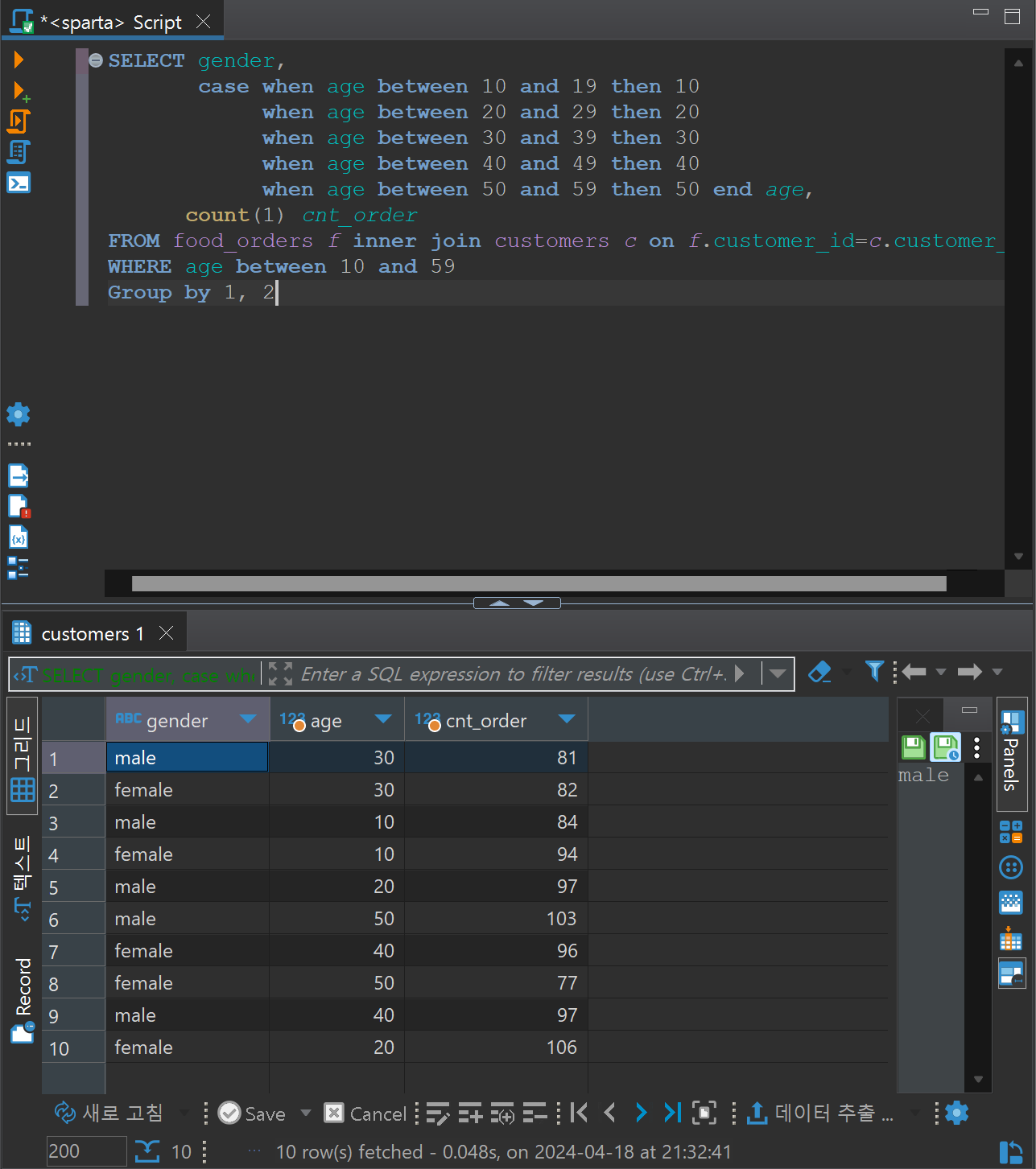 성별로 깔끔하게 정리하기 위해 if 사용하여 컬럼을 정렬해준다.