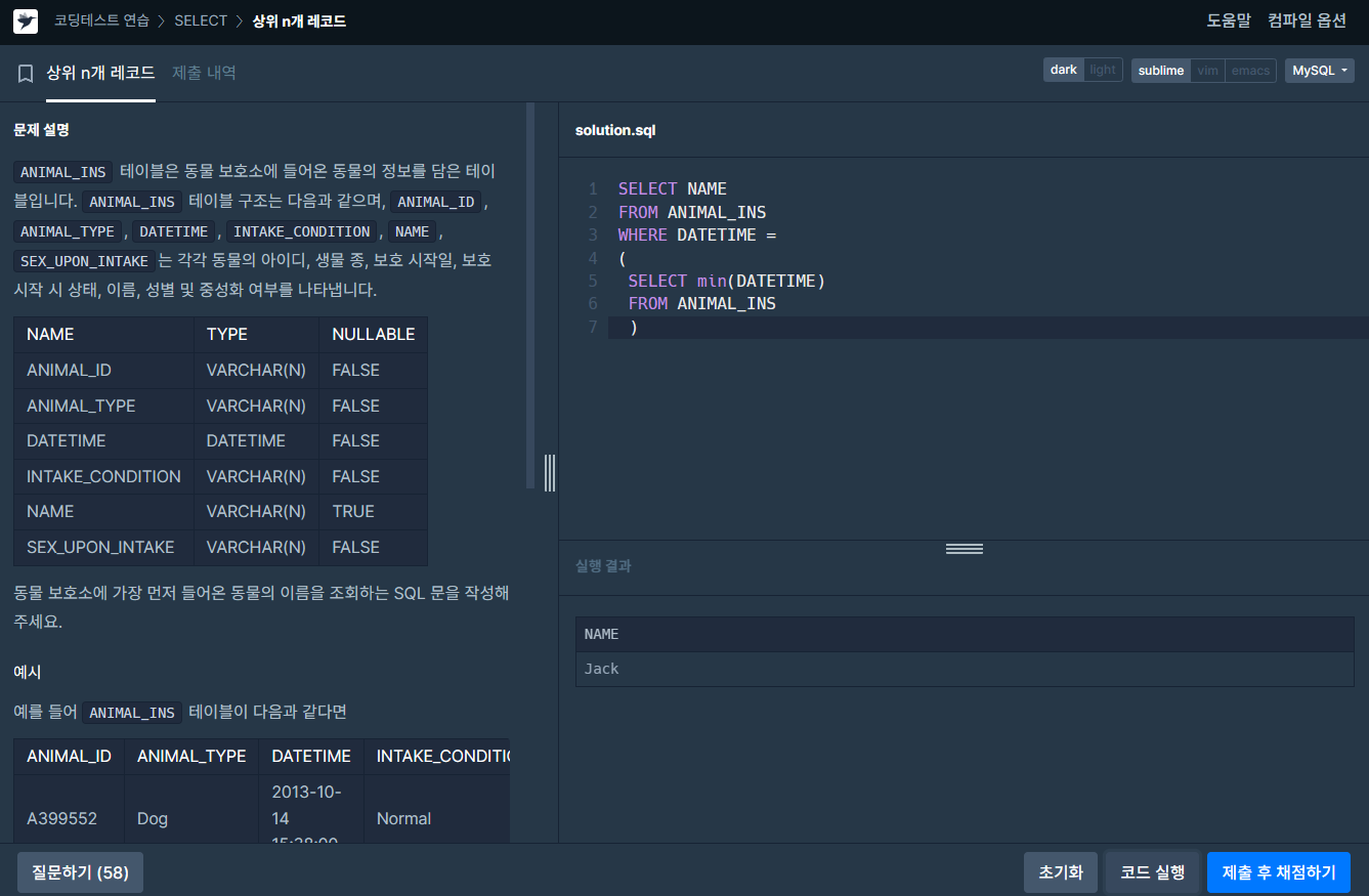 2. 상위 n개 레코드