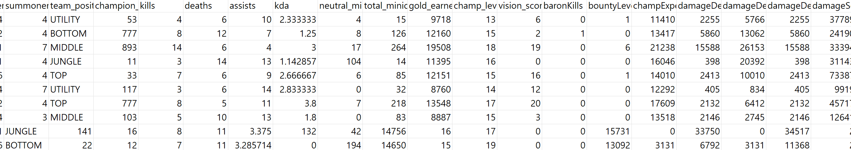 Riot Games API를 활용해서 League of legend 데이터 프레임도 만들어 봤다.(*Match_V5, 83개의 컬럼)