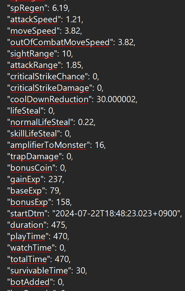주제는 이미 결정했지만 주 게임을 선정 못해서 계속해서 컬럼을 비교하고 다양한 API를 찾아보았고, 팀장님의 추천으로 이터널리턴의 API로 결정했다.