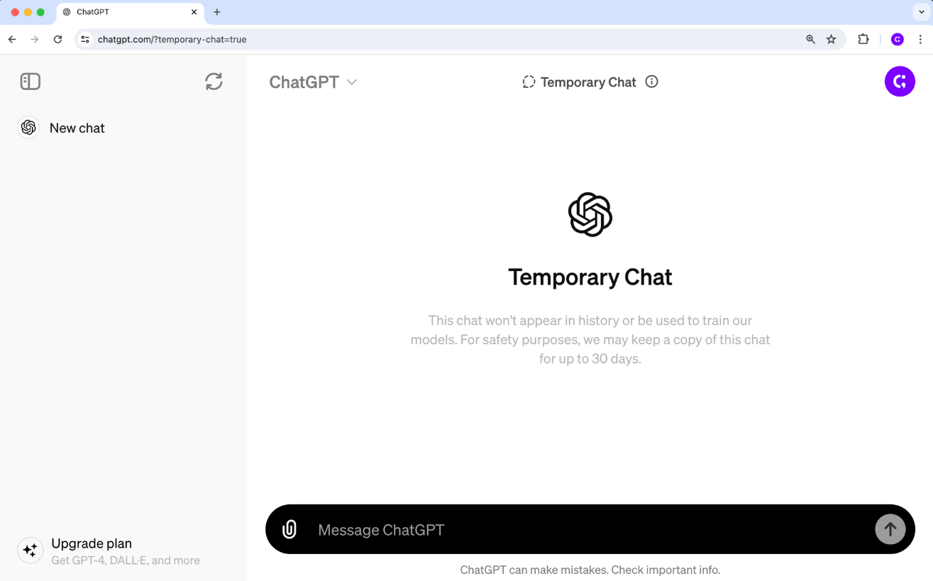 → 임시 채팅방에서 나누는 대화는 모델 학습에 사용되지 않으며 채팅방이 사이드바에 남지도 않는다.