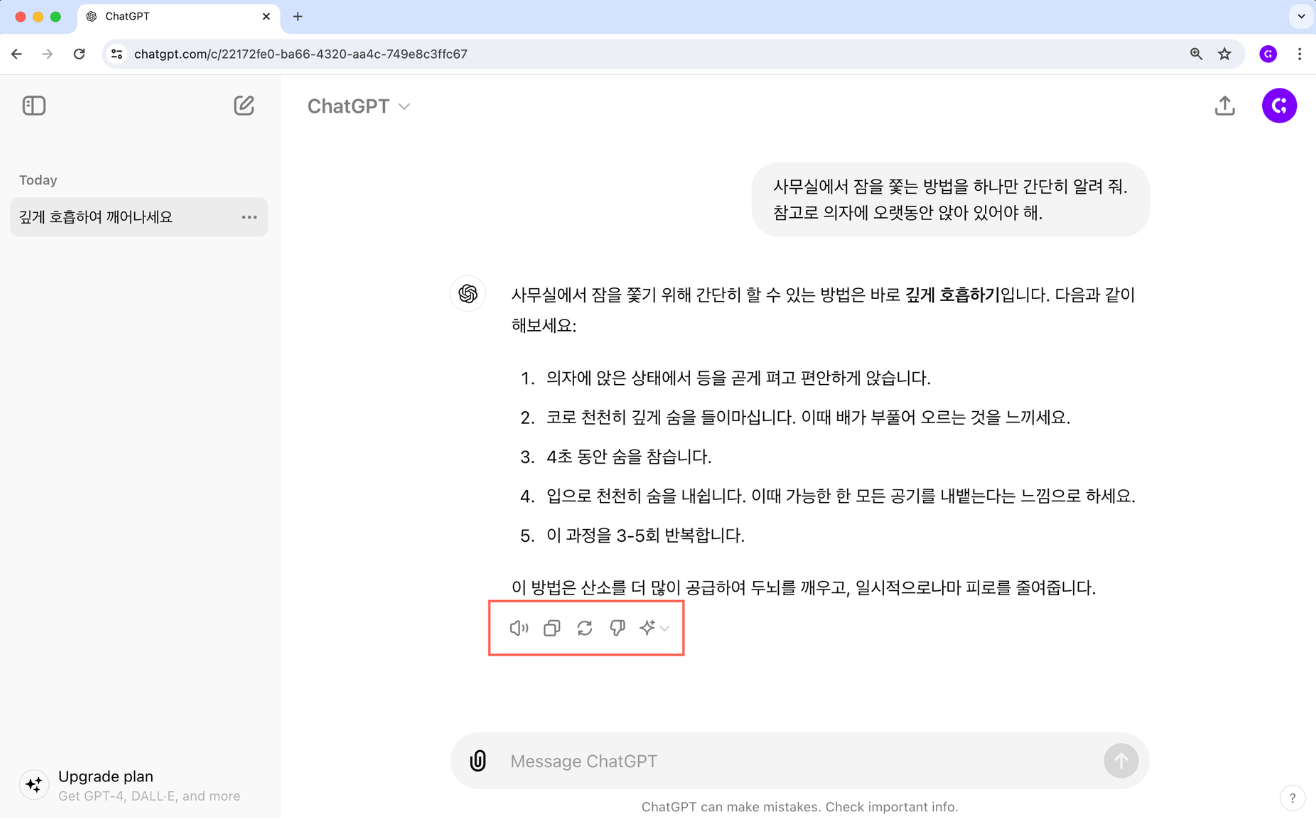 Chat GPT의 답변이 끝나면 답변 아래에 여러 버튼이 나타난다.