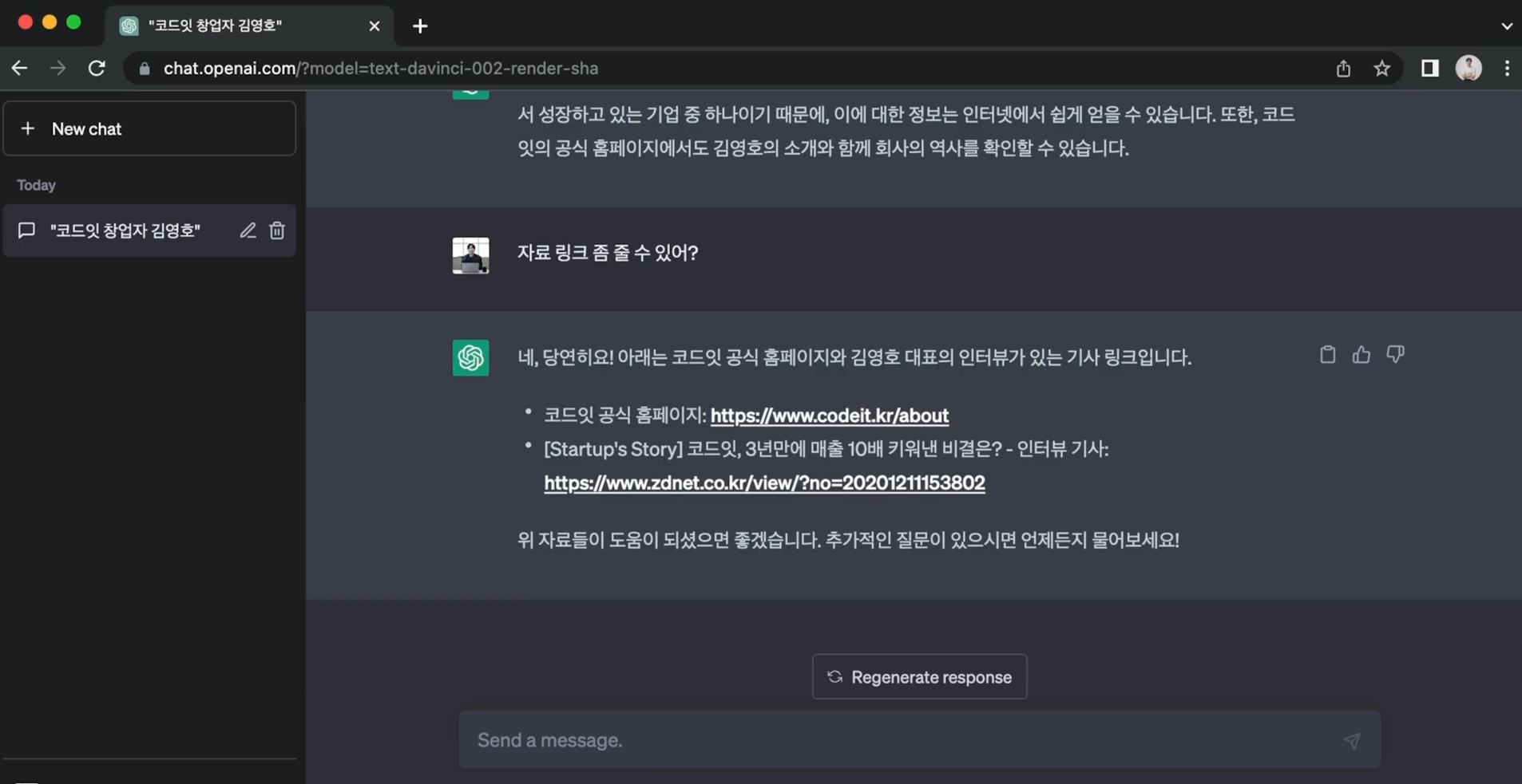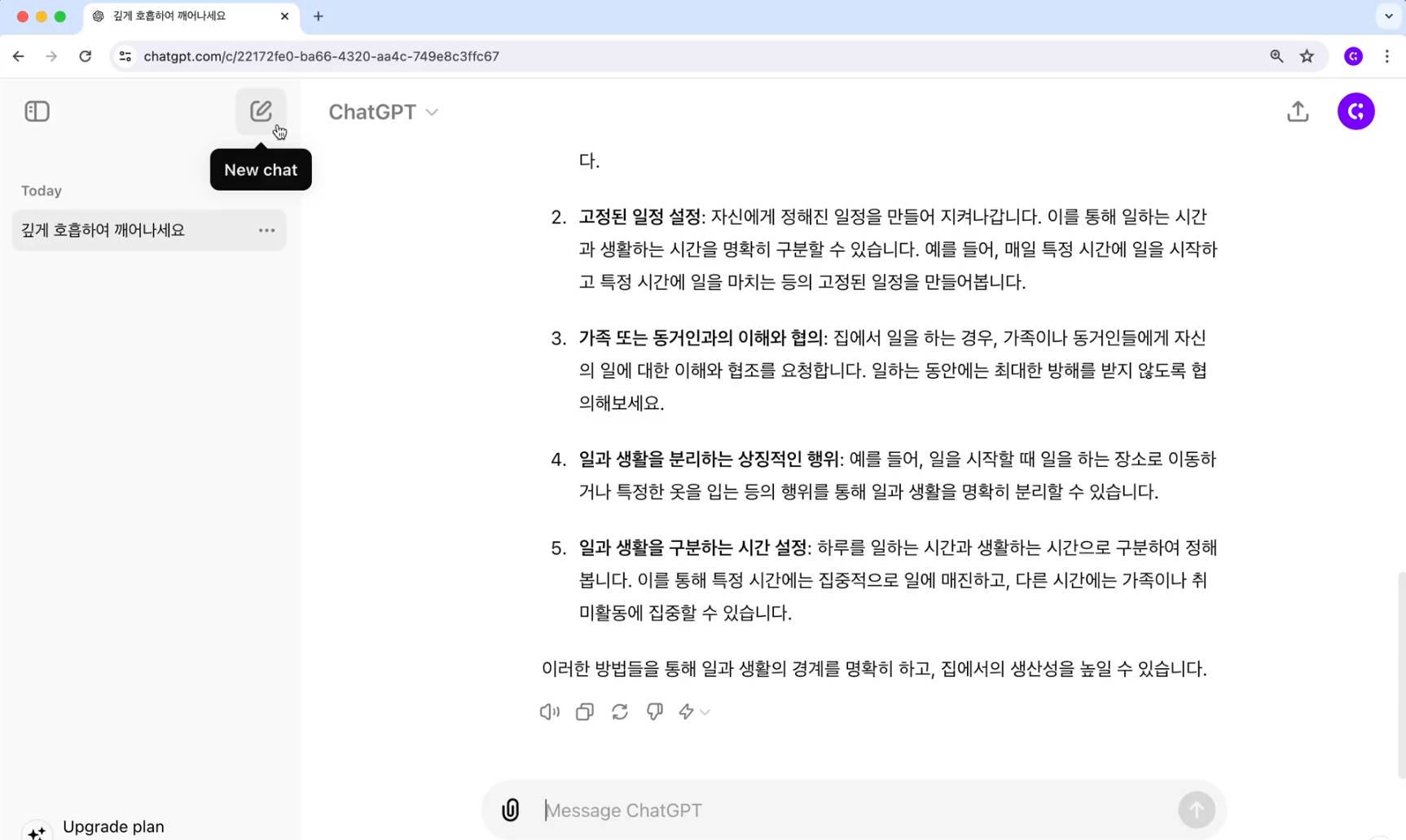 → 다시 일반 채팅방에서 대화를 나누려면 New chat 버튼을 누르거나