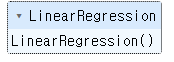 lr = LinearRegression() # LinearRegression 클래스의 객체 lr 만들었음