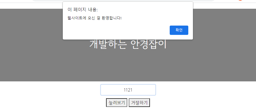 그럼 이제 input 박스에 아무 글씨가 넣고 입력하면 해당 글씨가 alert 될 것이다.