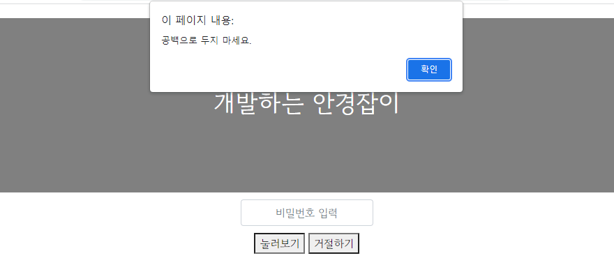 오! 공백으로 두지 말라는 메시지가 나왔다. 자 그럼 비밀번호 입력에 아무것이나 입력해보자.