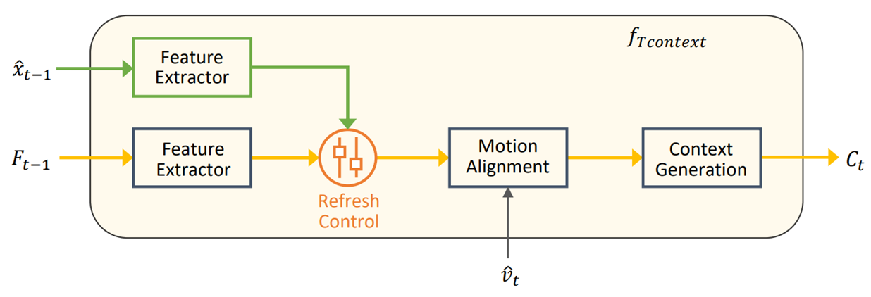 P 프레임 코딩을 하면서 에러가 점점 누적되는건데, FM에서는 이를 해결하기 위해 context를 생성할 때 주기적으로 feature가 아닌 복원 영상을 활용한다.