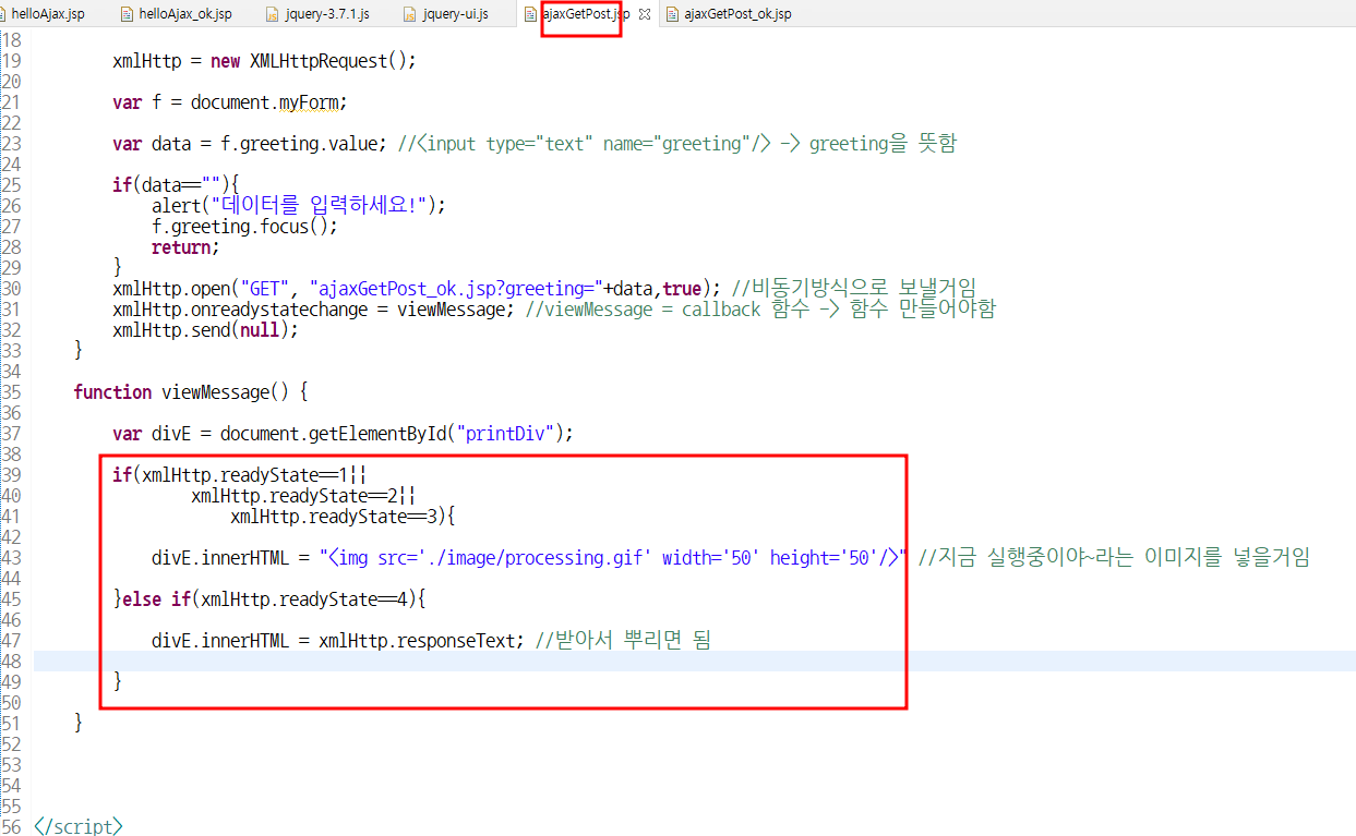 xmlHttp.onreadystatechange = viewMessage; //viewMessage = callback ํจ์ -> ํจ์ ๋ง๋ค์ด์ผํจ