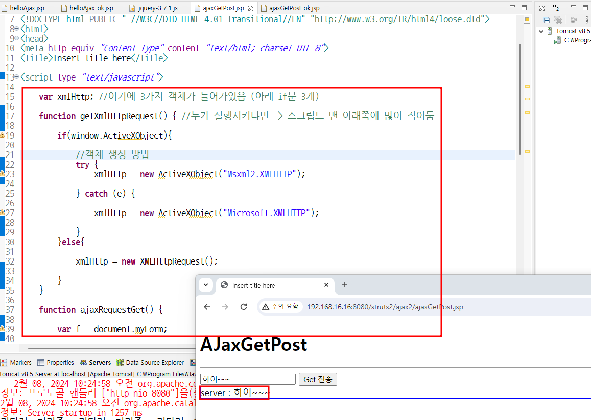 xmlHttp.open("POST", "ajaxGetPost_ok.jsp",true); //POST๋ฐฉ์ -> ๋ฐ์ดํฐ ๊ฐ์ง๊ณ ๊ฐ ์ ์์