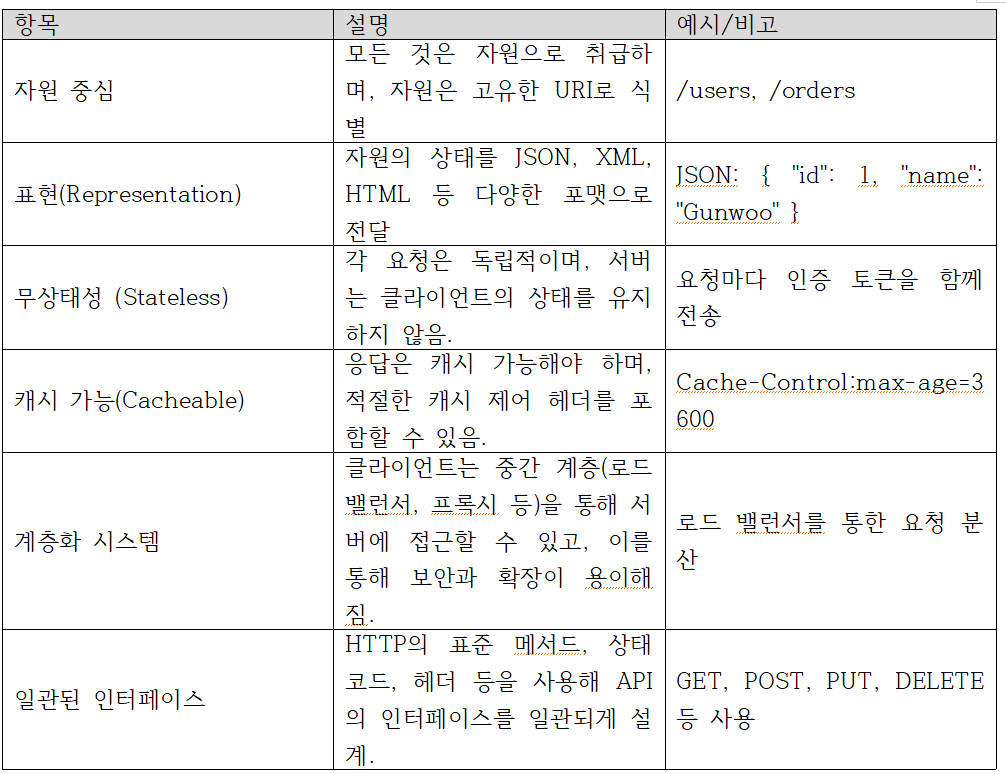 작년에 프로젝트를 진행하면서 배웠던 내용인데 다시한번 기억을 상기시키고 좀 더 심화해서 공부하기 위해 한번 정리해놓는게 좋겠다고 생각해서 정리하려고 한다. 여기서는 REST의 기본 특징, 설계 원칙, 그리고 실제 Spring Boot를 이용한 구현 예제를 알아보도록 한다.