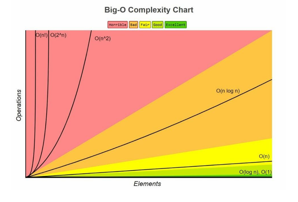 빅오표기법 차트로는 n! > 2^n > n^2 > nlogn > n > logn > 1 순이다.