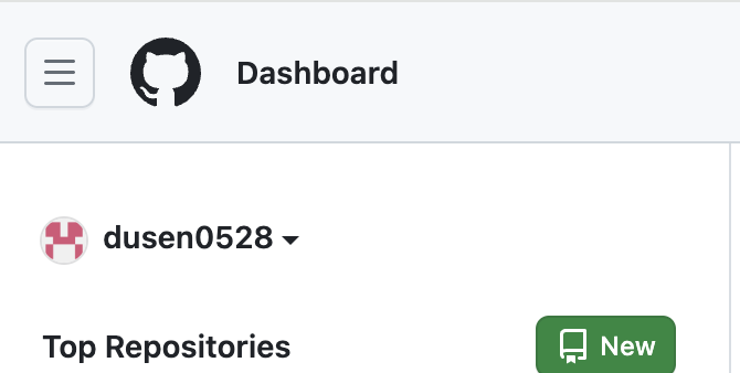 이후 깃 허브 홈페이지(https://github.com/)에 방문해서 새로운 레포를 생성하면 끝