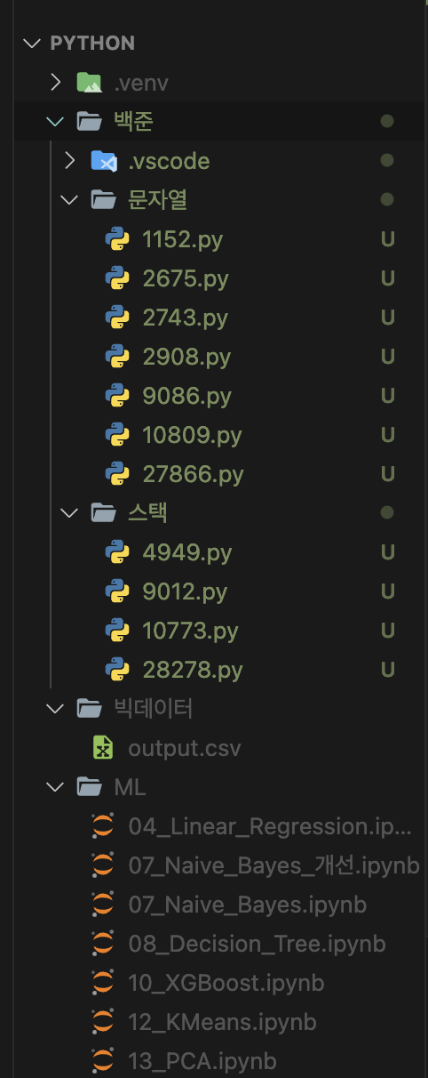 저의 경우 Python -> 백준 폴더만 이동하고 싶었기 때문에 다음과 같이 이동하였습니다