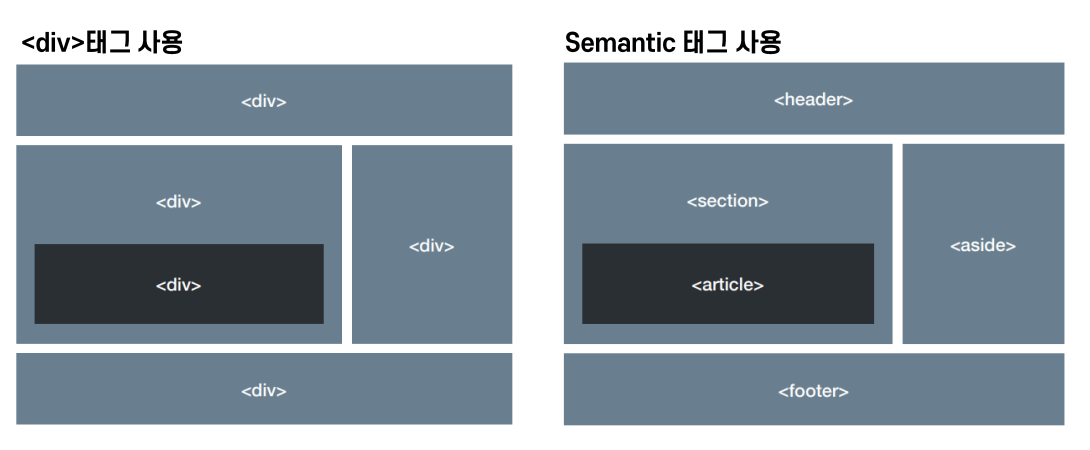 | <article> | 글자가 많이 들어가는 부분(그 자체로 독립적으로 구분되거나 재사용 가능한 영역) |