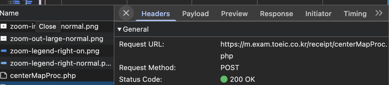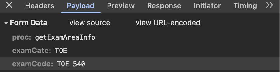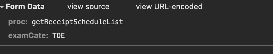 시험 일정과 위치 리스트, 시험장 리스트를 받아오기 위해 토익 홈페이지를 다시 한 번 분석했다.