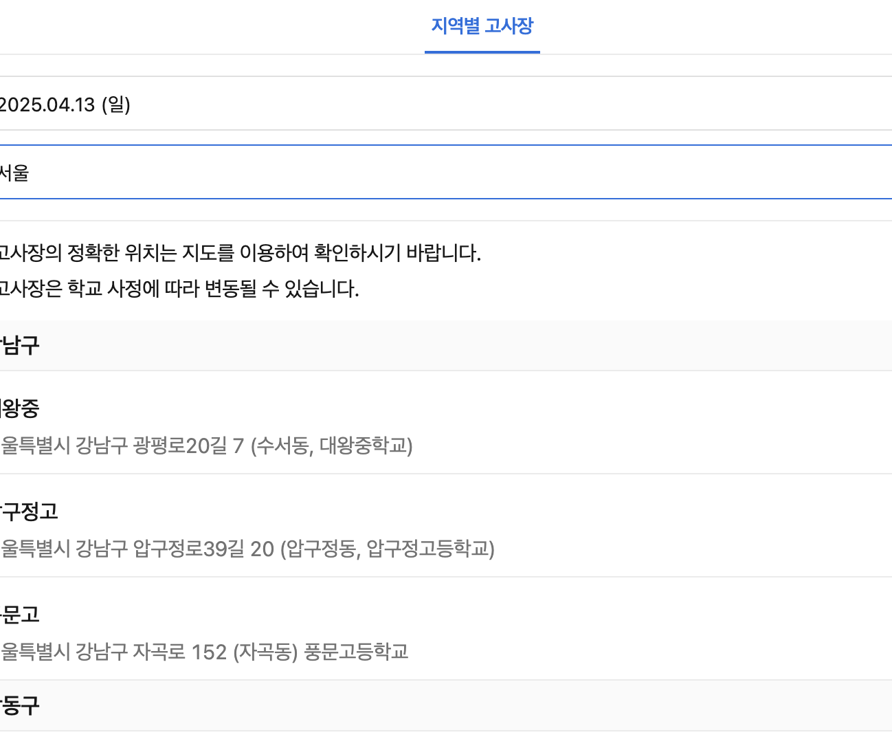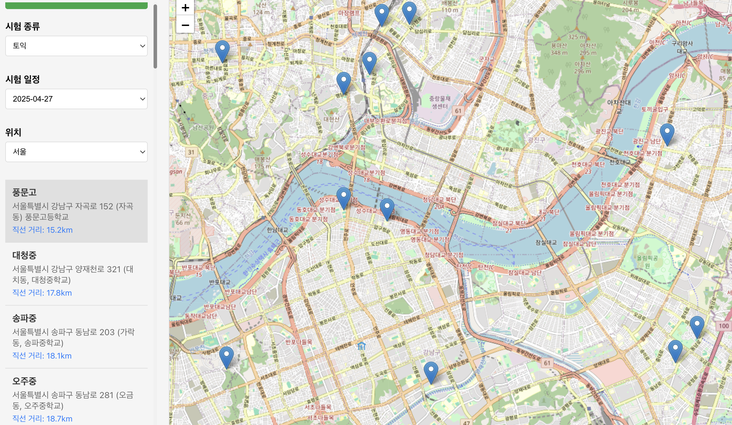 토익 고사장 리스트에서, 내 근처의 고사장을 쉽게 찾기 어려워 위치를 하나씩 검색해보며 찾아야했다.