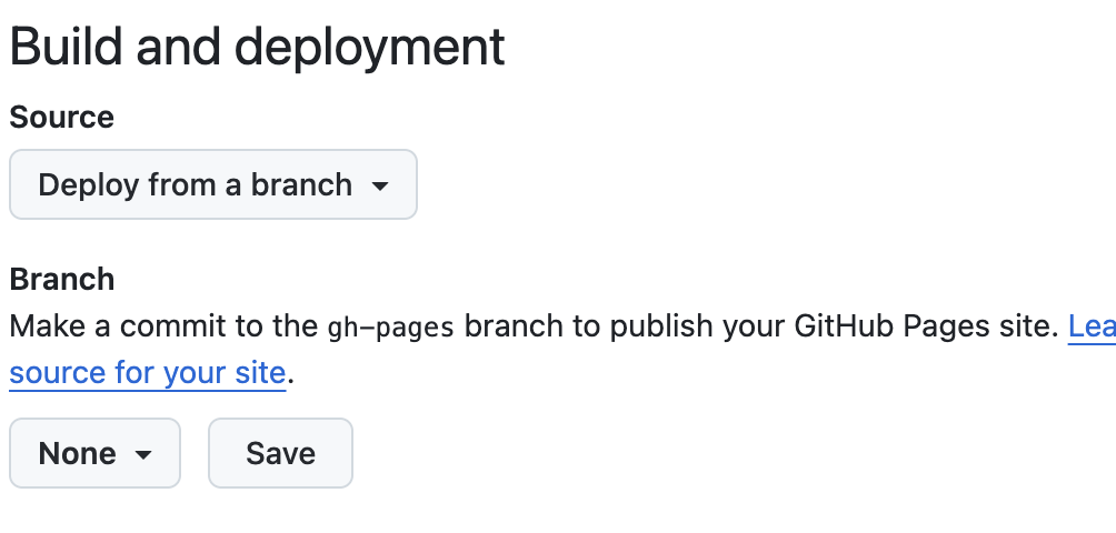 Pages 브랜치를 None으로 바꿔 Github 퍼블리싱도 중단 완료!