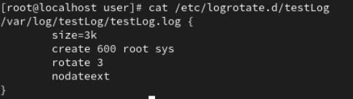 /etc/logrotate.d/testLog라는 이름으로 순환 시킬 로그 파일, 순환 조건, 순환 파일 개수, 로그 파일의 이름을 설정한다.