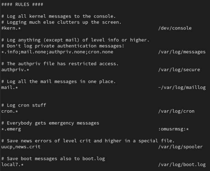 rsyslogd는 시스템 로그 표준 프로토콜로 syslog를 사용하여 로그를 저장하는 프로세스다. /etc/rsyslog.conf를 사용해 저장할 로그 파일을 설정하고 수신 로그를 /var/log의 각 파일로 전달한다.