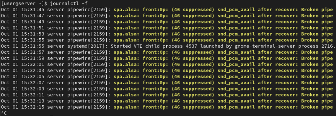 우선 순위 지정 출력, 날짜 지정 출력과 같이 다양한 옵션이 있지만 최근 로그와 현재 발생하고 있는 이벤트에 대한 로그를 실시간으로 모니터링 할 수 있는 -f옵션이 있다.